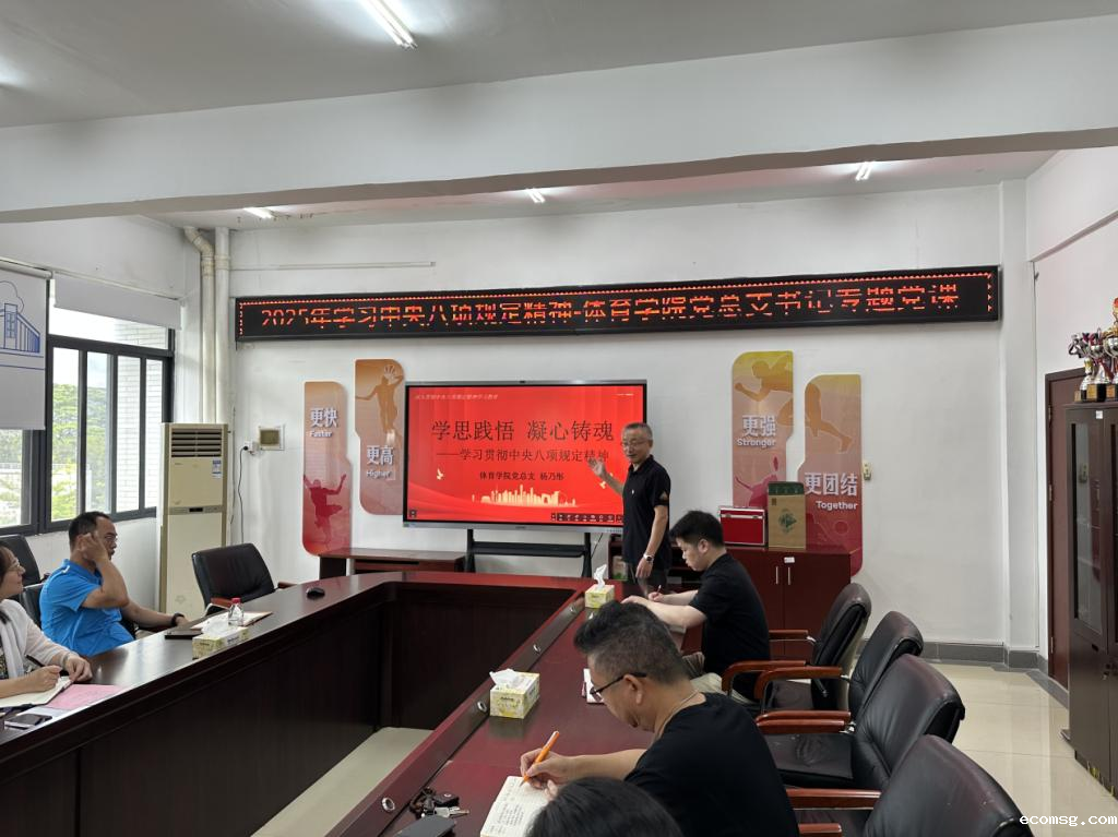 2025年5月20日上午,体育学院党总支书记杨乃彤以“深入贯彻中央八项规定精神学习教育”为主题,为全院党员师生讲授专题党课。